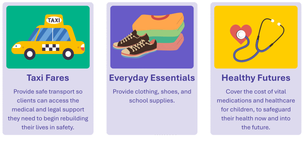 Your generosity helps provide clients with the resources they need to rebuild their lives, regain their independence, and create lasting change for themselves and their families.